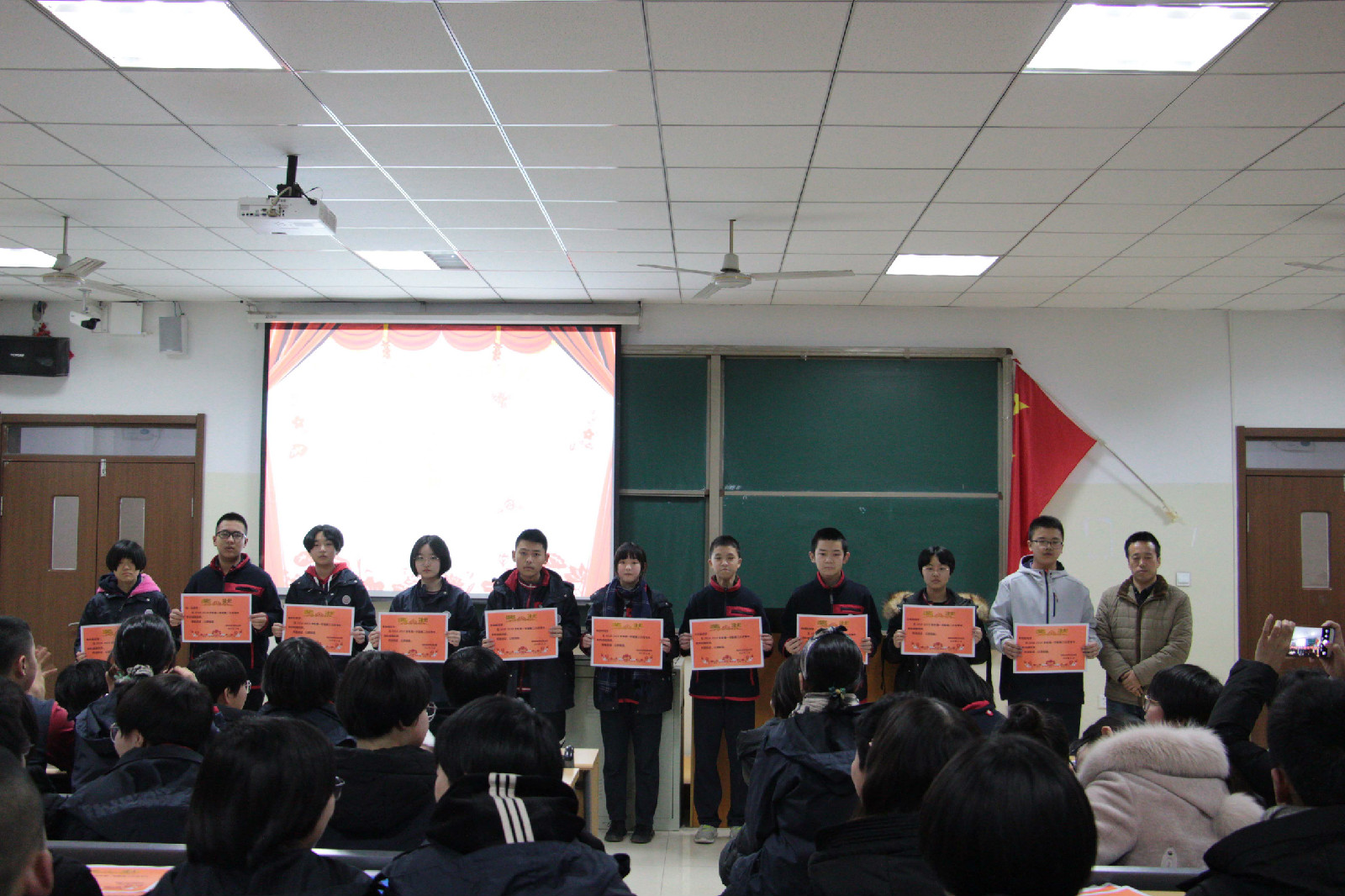 不知不觉,一个月又已过去,有些同学通过惜时、专注、自律和持久在本次月考中取得了可喜的成绩,请相信人生没有白走的路,你现在的低头苦读,正是为了明天你的昂首阔步。12月12日,我校分别在报告厅和二楼阶梯教室同时为初一、初二年级学生进行了12月月考的表彰会。