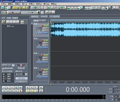 首先,让我们启动Audition 1.5, Audition 1.5包括3种界面模式,可以通过模式按钮来随意变换,以下分别代表单轨模式、多轨模式和CD模式。如下图