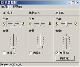 在录音之前,将系统的麦克风设置打开。在声卡的录音控制面板中选择麦克风输入,调试好麦克风,然后就可以用麦克风录入自己的声音了。