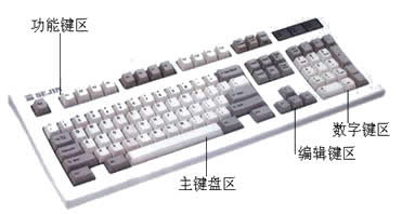 如下图所示,键盘按功能为分四个区: