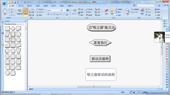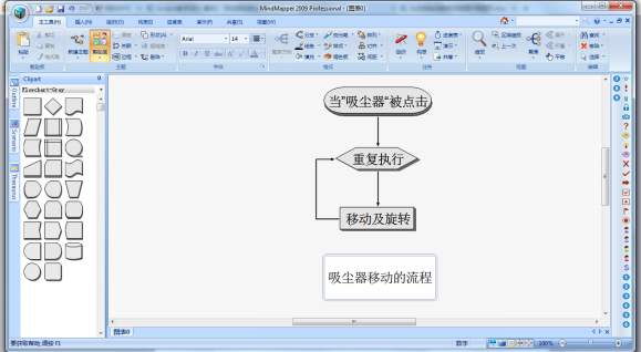 下面以制作《吸尘器移动的流程》为例,介绍如何利用思维导图软件绘制流程图。