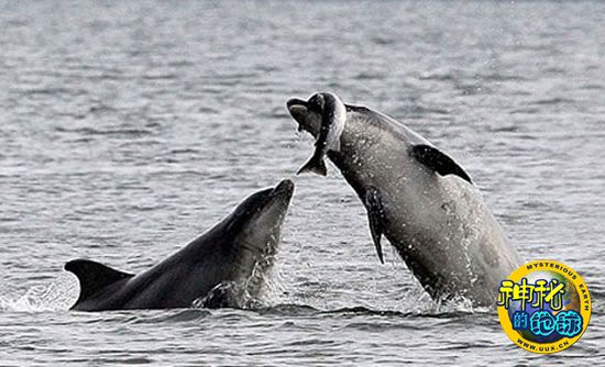 宽吻海豚主要以带鱼、鲅鱼、鲻鱼等鱼类为食,也吃乌贼等头足类动物。它的精力充沛,动作灵活,常常作出一些引人注目的跳跃动作。它喜欢把捉到的鱼高高地向上抛起来,然后自己也跳出水面,在空中再把鱼咬住,只把鱼身体中间的部分吃掉,而将头部和尾部仍掉,留给了尾随其后的海鸥。它无论在水中或将头伸出水面时,都同样具有良好的视力,但却主要是运用一套十分奇妙的回声定位的方法在水下航行和觅食的。它没有外耳壳,声音是通过颌骨中的一个纤细的“窗口”来传递的,如同一个效率极高的多功能声发射器,能发出多种多样的声频和超声频的声音信号,以巧妙的方式形成尖锐的发射波束,还能随通信、搜索、跟踪和识别的不同需要而改变信号的参量,当它发出的声波在水中碰到各种物体时,会立即反射回来,由具有异常的分辨和识别能力的信号处理系统进行分析和判断后再发出指令,指挥身体作出适当的反应。因此它在完全黑暗的水下也能行动自如,甚至还能用高频声波把鱼类等猎物击昏,然后从容地取食。