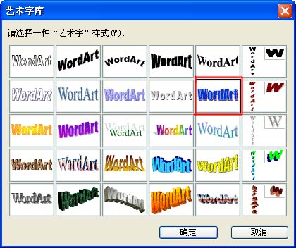 2.如下图,在艺术字库中选择你喜欢的艺术字后,点击“确定”按钮。