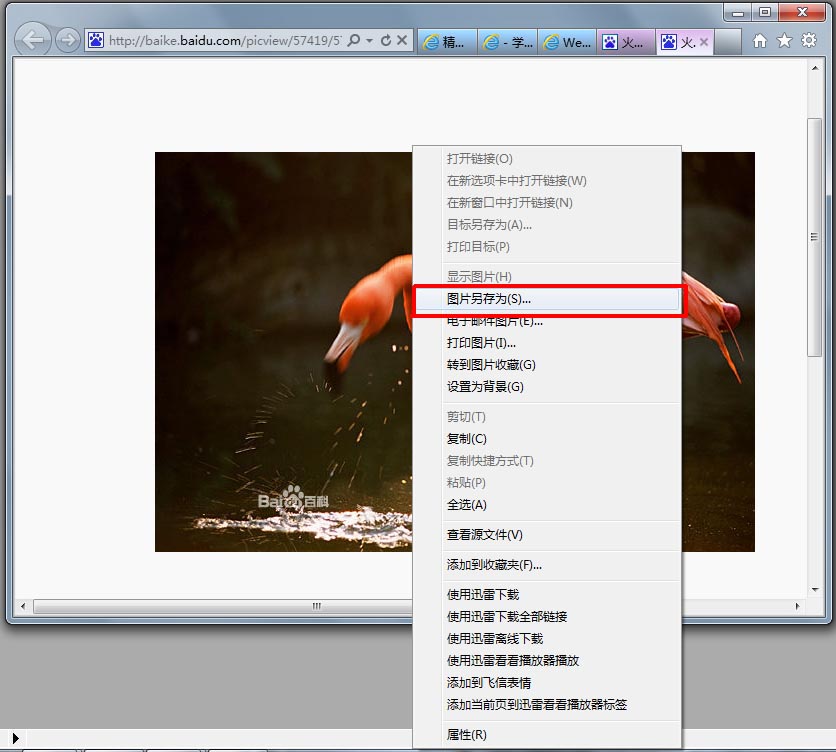 3.用鼠标右键点击打开的图片,从弹出的菜单中选择“图片另存为(S)...”
