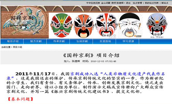 指导、协助一线教师开展数字化下的个性化及基于项目的学习校本化教学实践,涌现出《赛场上的“怪事”》《走进灿烂的中国传统文化》《国粹京剧》《读书很重要吗?》《理想点燃幸福》《生命离不开绿色》《正月十五闹元宵》《小小园林规划师》《建筑规划设计师》等一批优秀教学案例,截止到现在荣获一个全国三等奖、三个河北省一等奖、两个二等奖、一个三等奖。并且带动了更多教师参与、践行项目学习,将项目学习理念、方法校本化。此外,4月11日、12日,与王校长、何老师带领15名学生去北京参加2012信息技术峰会,现场上了一节一对一环境下的语文课。