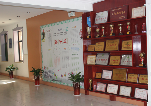 学校的一楼荣誉栏上面一个个奖杯,一块块奖牌,则时刻见证着学校的发展、变化、教师的辛勤付出和学生们成长的足迹,激励着学生更加奋发向上。