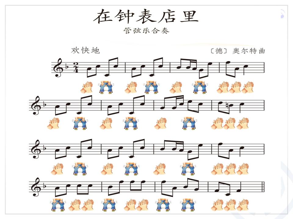 任务1:请同学们按照曲谱上第一主题的图示随音乐做动作。