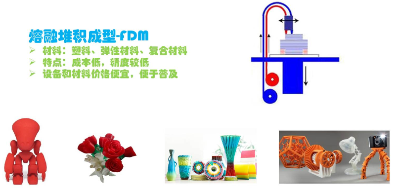 熔融沉积:丝状融性材料加热融化,通过带有一个微细喷嘴的喷头挤喷出来,