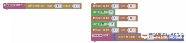 按照上述的测距流程,程序中的距离测量也可用右侧的程序实现。两者等效。