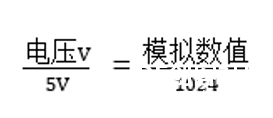 与数字信号的高低电平仅有高(HIGH,5V)、低(LOW,0V)两种电压状态不同,模拟信号的电压可以在0~5V之间变化,为了能较为精准的获取返回的电压信号,Arduino将其切分成2^10共1024级,每级对应0~1023范围内的一个整数数值。