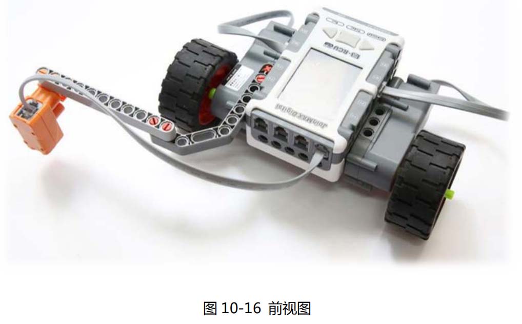 “关公巡城”小车的搭建如下图(参见图 10-16、10-17、10-18),这辆小车有一根弯弯的脖子。