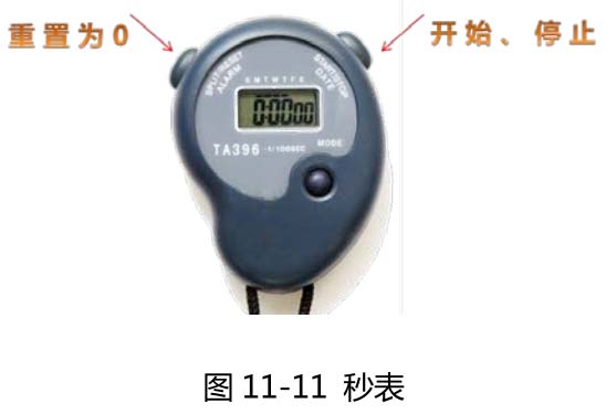 “秒表”(参见图 11-11)是比赛的标准配备,下面我们来学习一下秒表的使用。