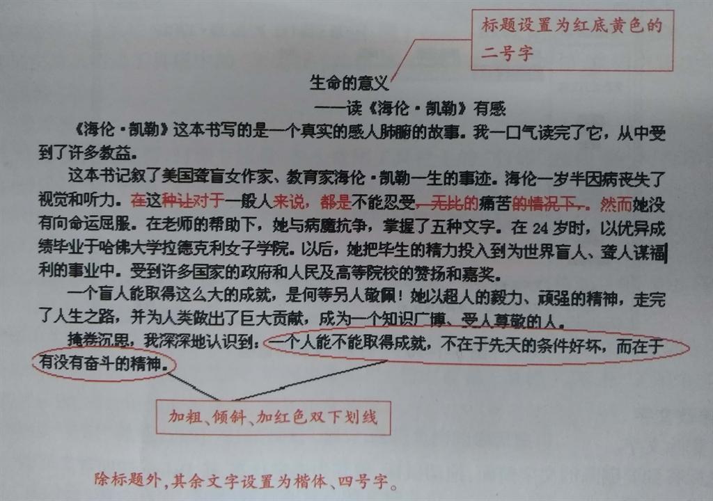 1.在word中,输入“生命的意义——读《海伦·凯勒》有感”。