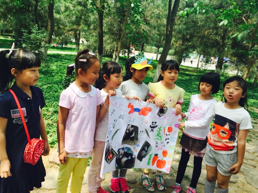 最后,在动物园游学当天,每个小组需要和观察的动物进行合影,导游介绍,当场完成本组的海报设计,进行全班的成果展示。