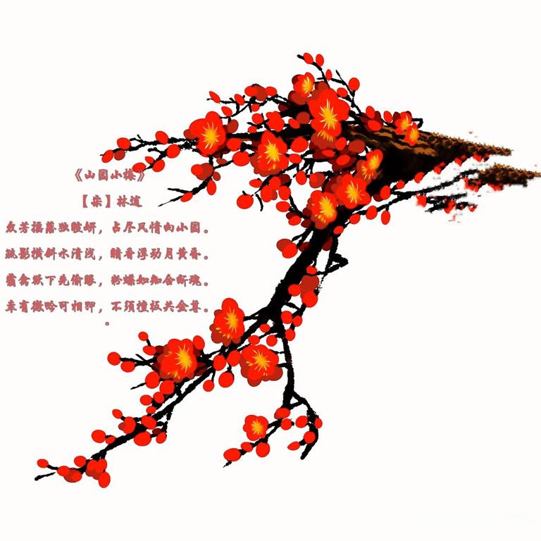 众芳摇落独暄妍,占尽风情向小园。疏影横斜水清浅,暗香浮动月黄昏。