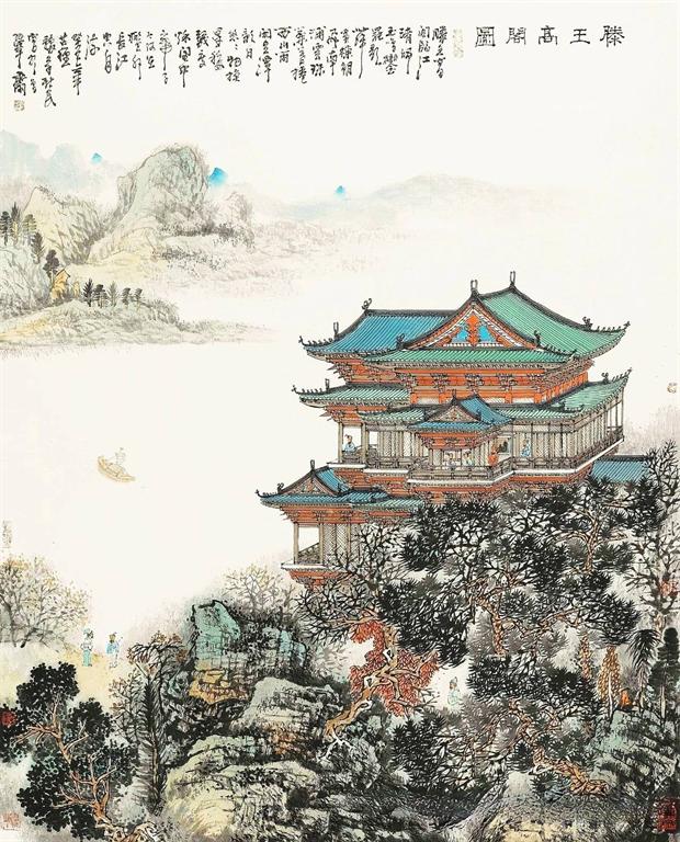 时维九月,序属三秋。潦水尽而寒潭清,烟光凝而暮山紫。俨骖騑于上路,访风景于崇阿。临帝子之长洲,得天人之旧馆。层峦耸翠,上出重霄;飞阁流丹,下临无地。鹤汀凫渚,穷岛屿之萦回;桂殿兰宫,即冈峦之体势。