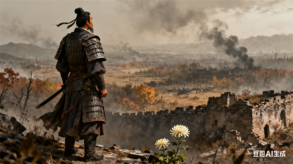 遍插茱萸的重阳,在破碎的山河里只剩行囊中的半朵干菊。长安的菊花应该开遍巷陌了吧?只是铁蹄踏过的故园,花香都浸透着烽火气。无人送酒何妨,醉眼才能看见往昔的曲江池苑——那时我们登高赋诗,还以为太平岁月会像菊花年复一年绽放。而今我握着缰绳计算归期,却算不出哪年能饮一杯没有硝烟的重阳酒。