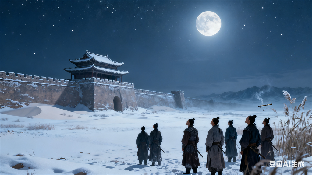- 征人望乡:不是一个人的眺望,是无数个身影伫立在城墙下、沙丘旁,有的握着兵器,有的望着远方,眼神里满是疲惫与思念,整个边塞的夜晚,都被这份思乡的愁绪笼罩。