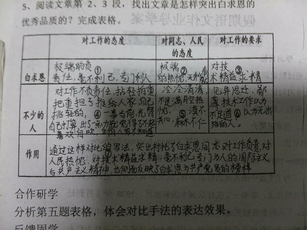 2. 第1段赞扬了白求恩舍己为人无私奉献的精神。