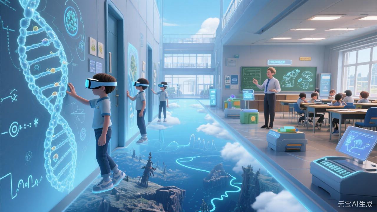 在这片由科技与想象构筑的学习秘境里,VR眼镜打破知识的次元壁——触摸DNA双螺旋的瞬间,生命科学的奥秘在指尖苏醒;脚下云海翻涌,微观世界与宏观地貌在此交融。传统课堂里,智能终端与互动黑板让知识具象可感,老师的讲解与学生的探索同频共振。
