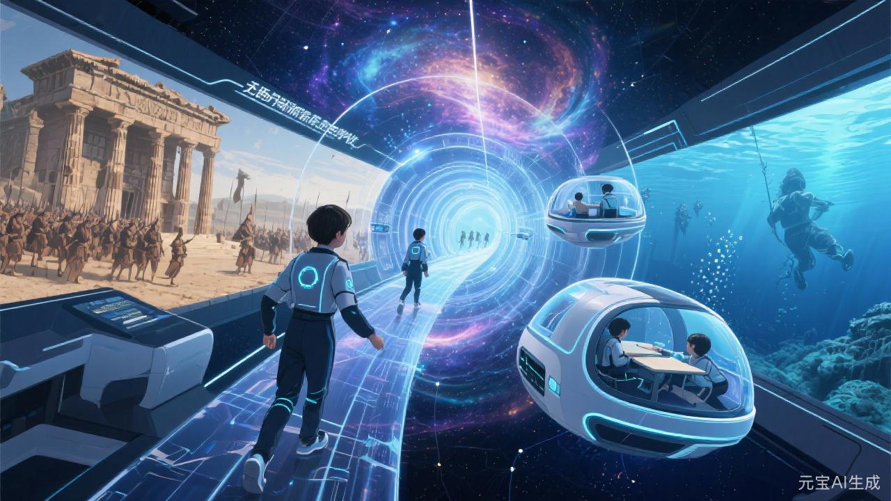 这是一场跨越时空的沉浸式冒险!踏入科技隧道,左手是古希腊战场的金戈铁马,右手是深海秘境的奇幻遨游——在这
