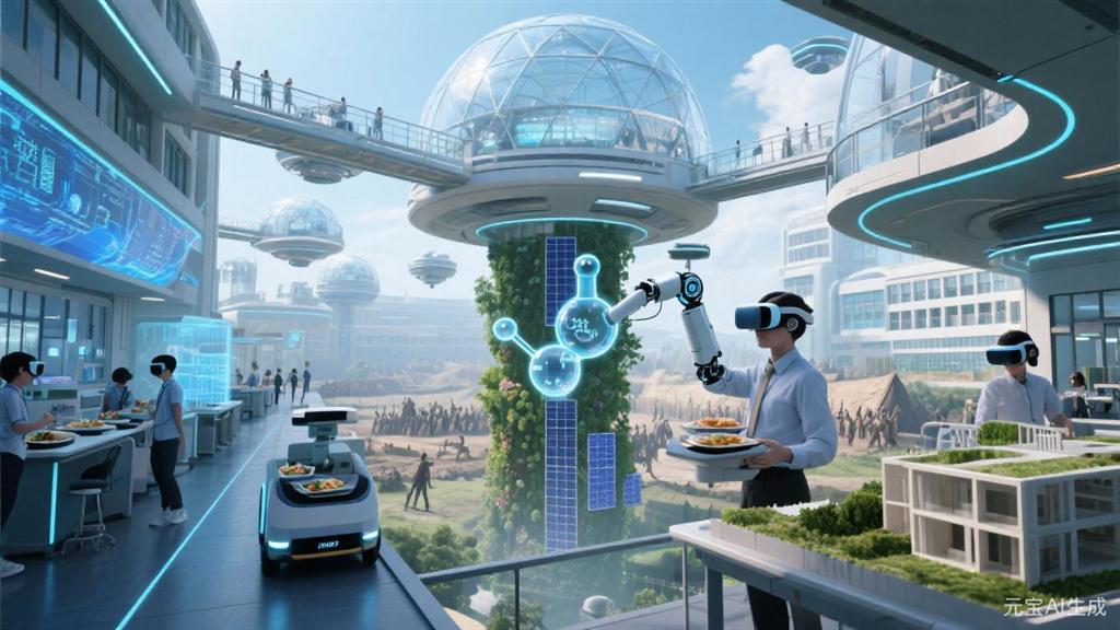 在这里,魔法与科技共舞!悬浮于符文环中的水晶教学楼,流淌着可触摸的全息知识河流;AI教师以星光形态授课,会说话的智慧植物与纳米机器人共育奇迹。跑道镶嵌加速魔纹,图书馆的书籍如飞鸟般主动寻觅求知者,量子屏障与魔法阵交织成最安全的守护网。我们坚信:真正的教育,是让科技拥有人文的温度,让魔法点亮理性的光芒——在这里,每个孩子既是未来科学家,也是现代魔法师!