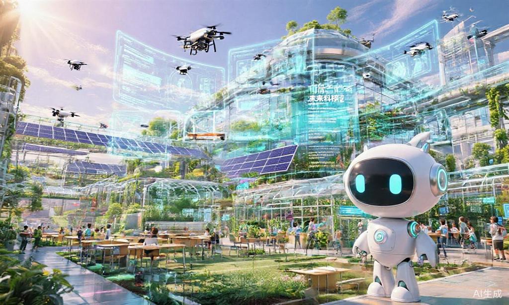 在未来校园,科技与自然共舞,智慧同梦想齐飞。