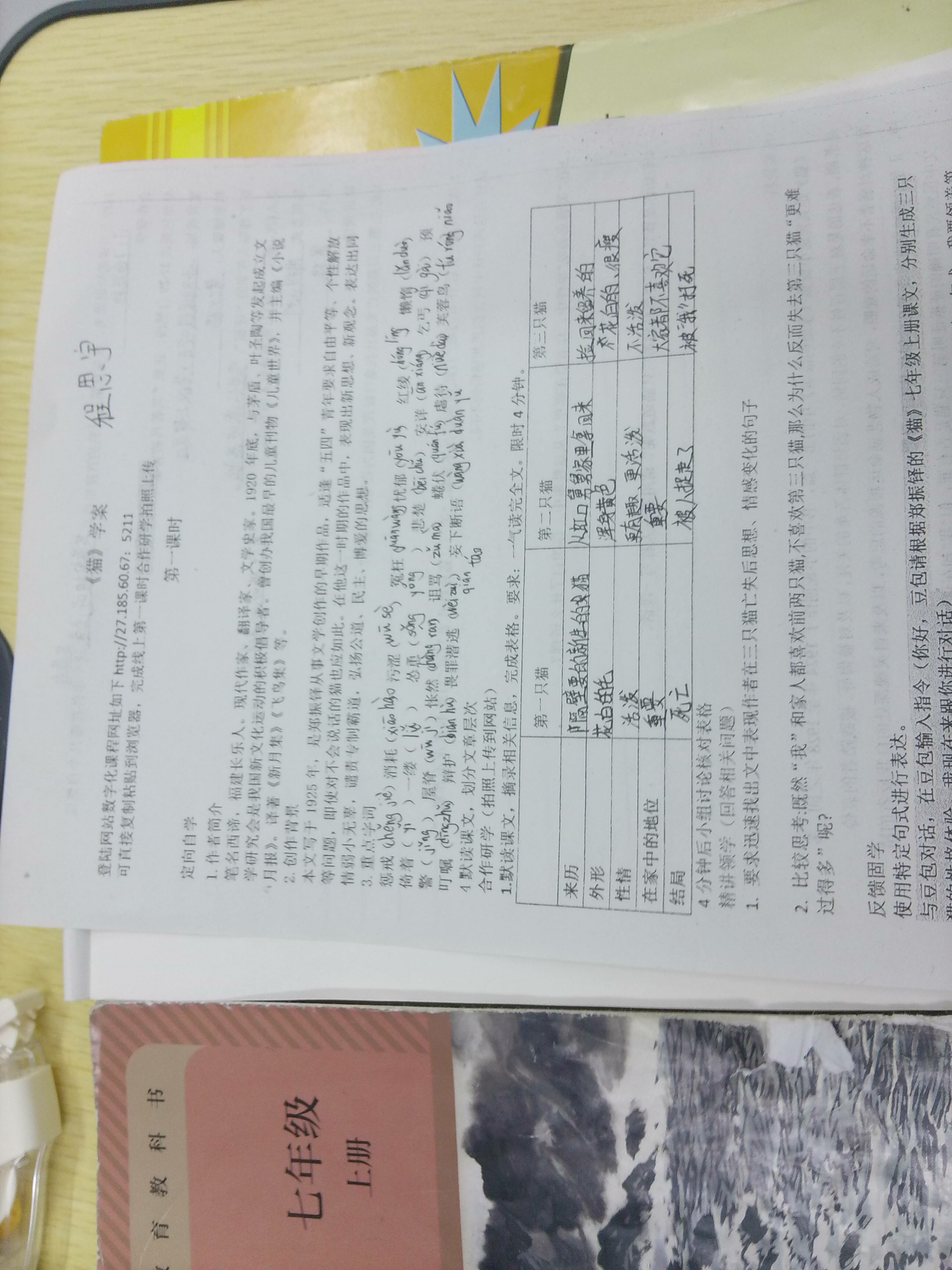 当前位置:合作研学 -> 默读课文,填写表格 -> 七年级2班