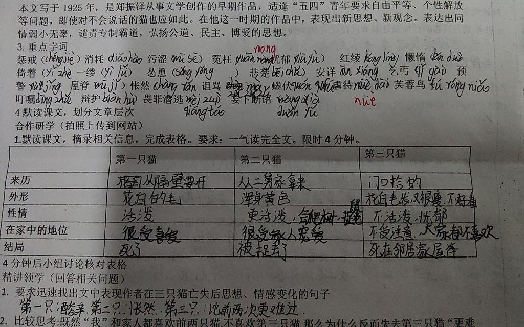 当前位置:合作研学 -> 默读课文,填写表格 -> 七年级15班
