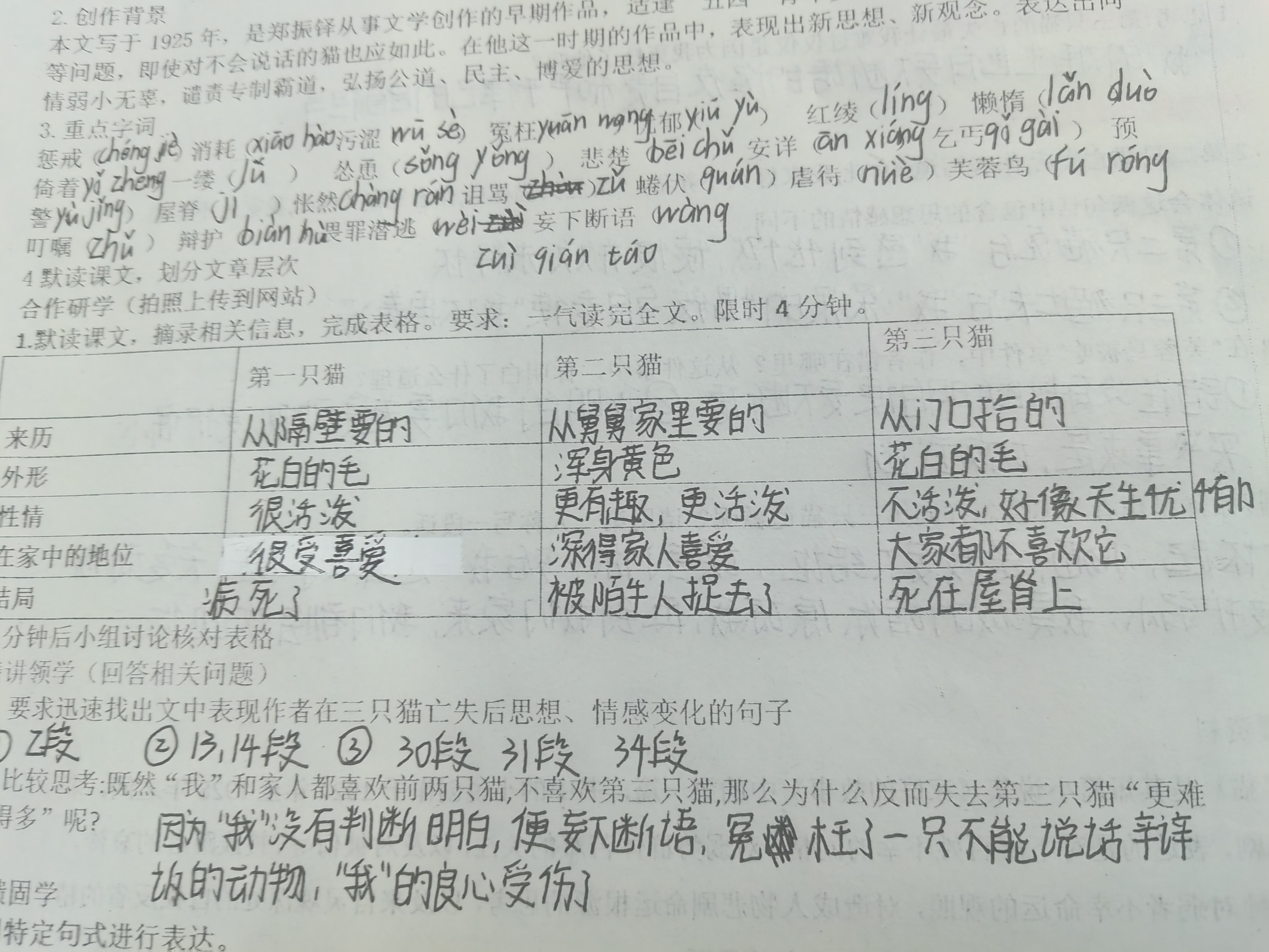 当前位置:合作研学 -> 默读课文,填写表格 -> 七年级15班